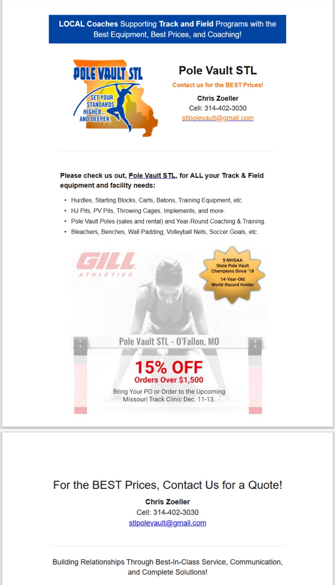 PVSTL Will be the ’26/’27 Equipment Supplier for the MSHSAA State Track Meet